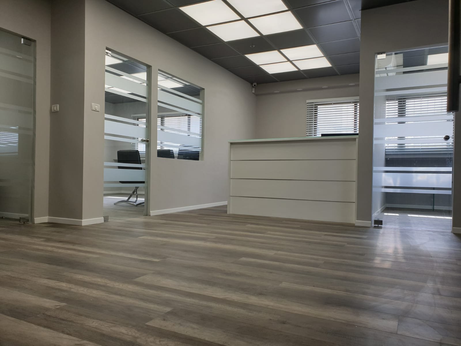 תקרת גבס צפה מעוצבת עם תאורה שקועה בפרופילי מגנטיים יוצרת חלל מודרני ומואר לעסק
