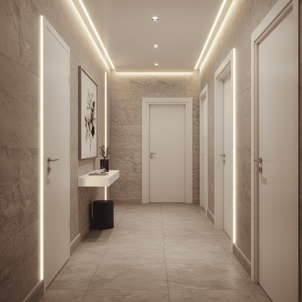 עיצוב נקי המשלב קווים מודרניים, חיפוי קירות יוקרתי ופרטי גמר מוקפדים